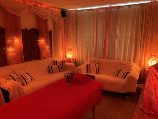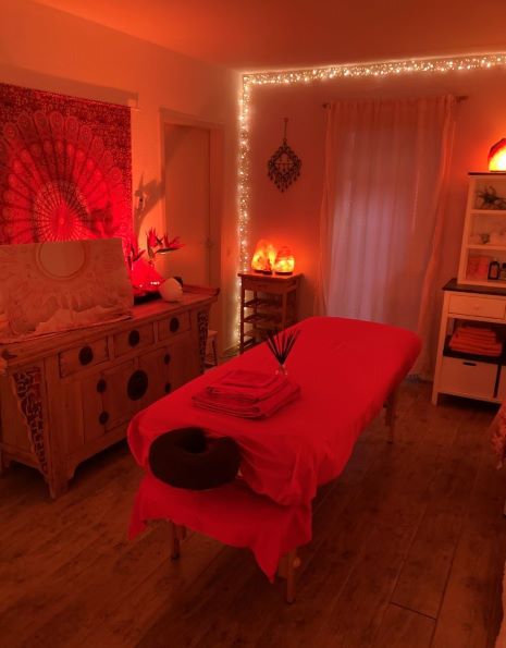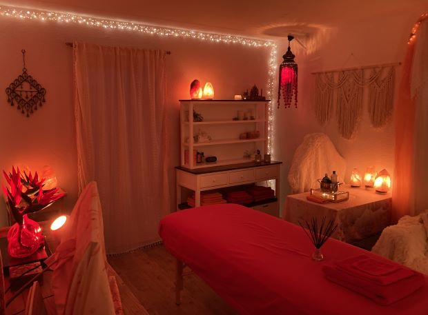 De massageruimte is aangenaam warm. De gezellige verlichting en niet al te lichte kamer zorgen voor een makkelijkere ontspanning. De zoutlampen zorgen voor ionisatie van de lucht en de geur van etherische olie zorgt voor dat fijne wellness gevoel. Een ontspannend muziekje en goede hygiëne maken de massagebeleving helemaal compleet.